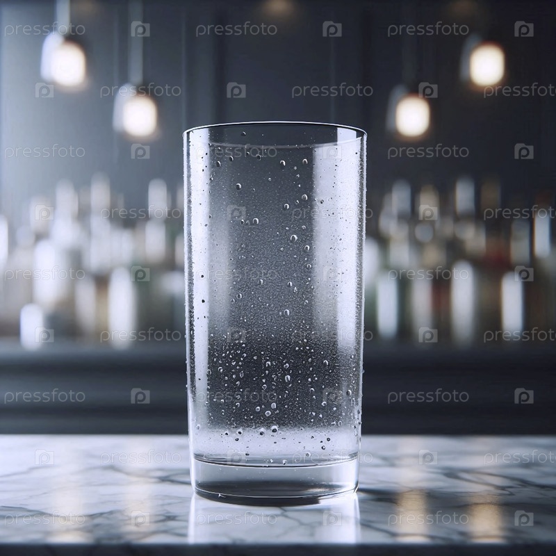 Чистый пустой макет стекла highball на мраморной стойке с конденсацией, Ai generated image