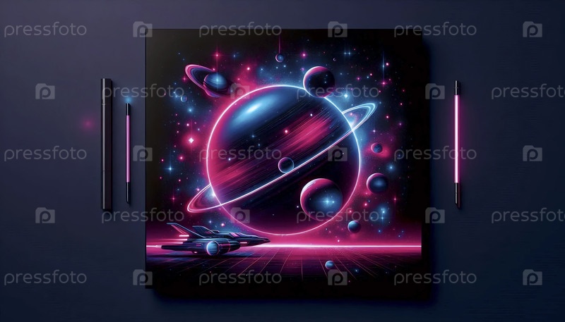 Цифровой неоновый космический художественный плакат, Ai generated image
