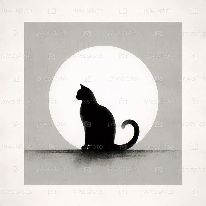 Минималистический японский стиль кошачий принт, Ai generated image