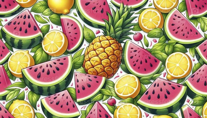 Сочный бесшовный рисунок тропических фруктов, Ai generated image