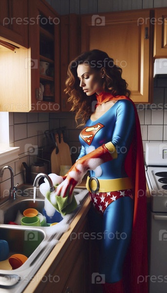 Супергероиня, посудомоечная, Ai generated image