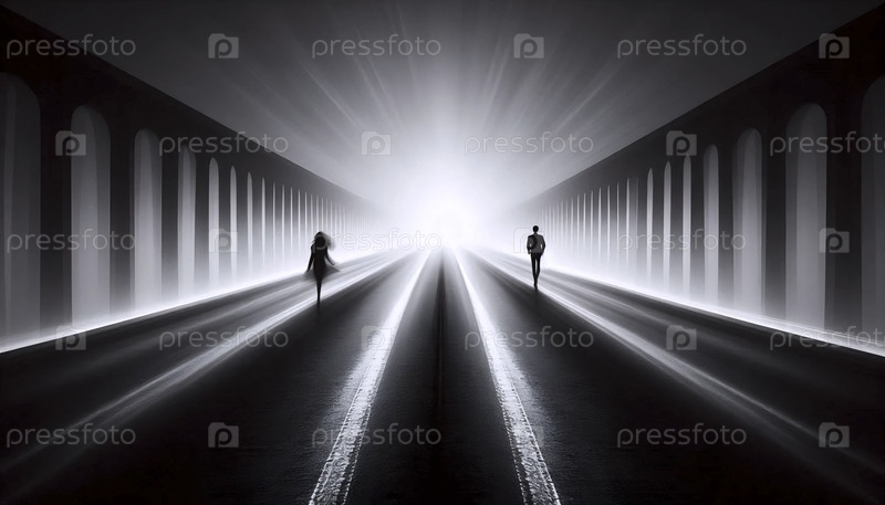 Размытый пар, идущий по мосту ночью, Ai generated image