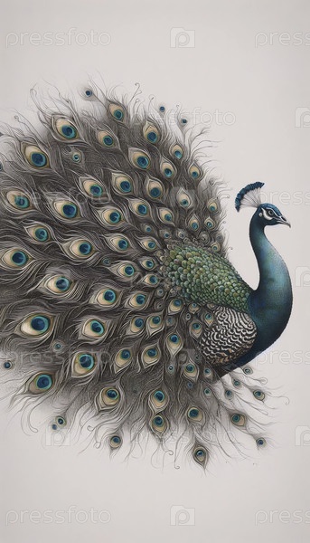 A proud peacock ink drawing art print, Ai generated image (Гордый павлин чернил рисует художественную печать, Ай создал изображение)