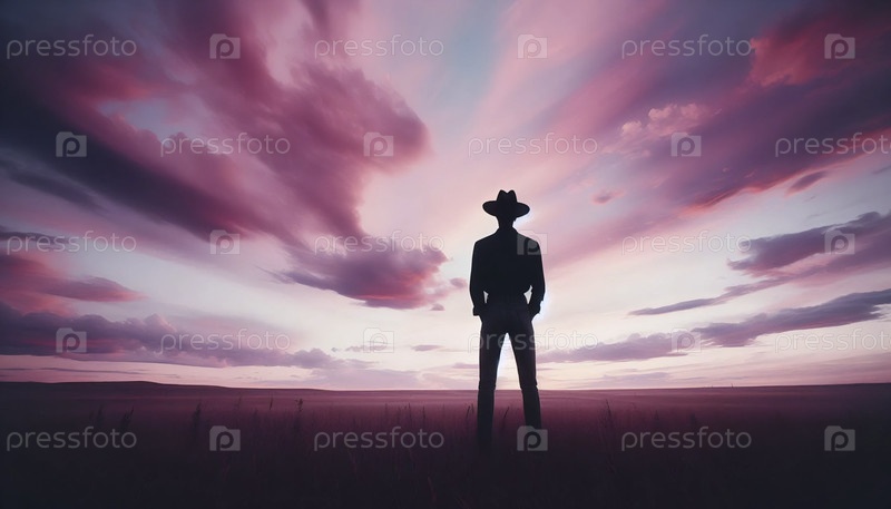 Модный портрет на закате прерии, Ai generated image