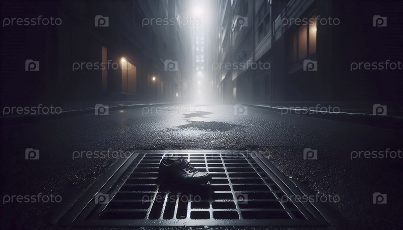 Широкий, атмосферный снимок одинокой обуви на пустой улице Ай создал изображение