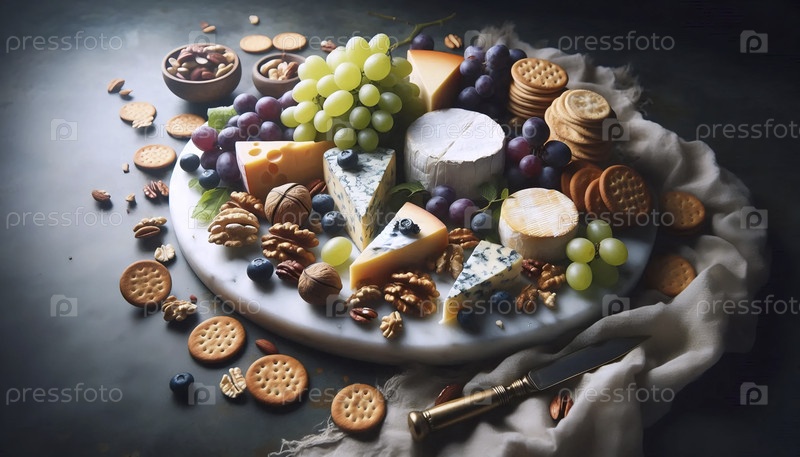 Красиво оформленная сырная доска на мраморе, Ай создала изображение