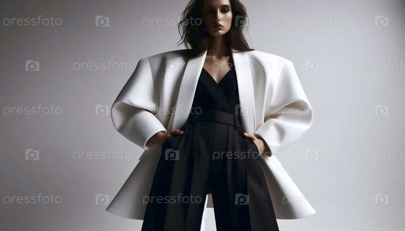 Женщина в большом белом блейзере и широких брюках, Ai generated image