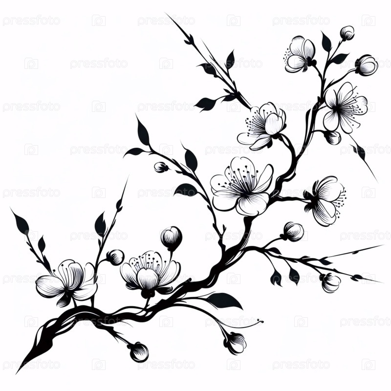 Вишневый цветок ветви линейного искусства, Ai generated image