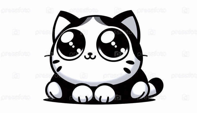 Черно-белая иллюстрация кота кавайи, Ai generated image