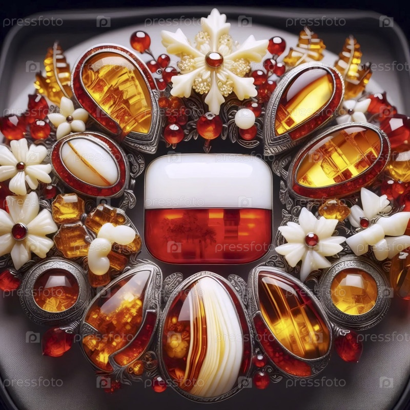 Польский флаг в янтарном ювелирных украшениях ремесло, Ai generated image A