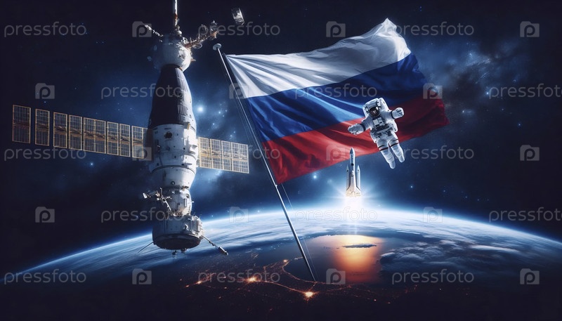 Российский флаг в космической прогулке и наследие космонавтов, Ai generated image