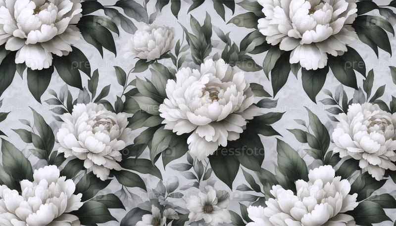 Плитка с бесшовным узором белых пионьев, Ai generated image