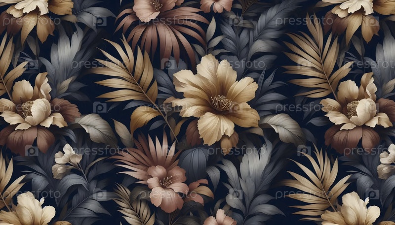 Ботанический шаблон темно-синий горчичный розовый ткань цветочная печать, Ai generated image
