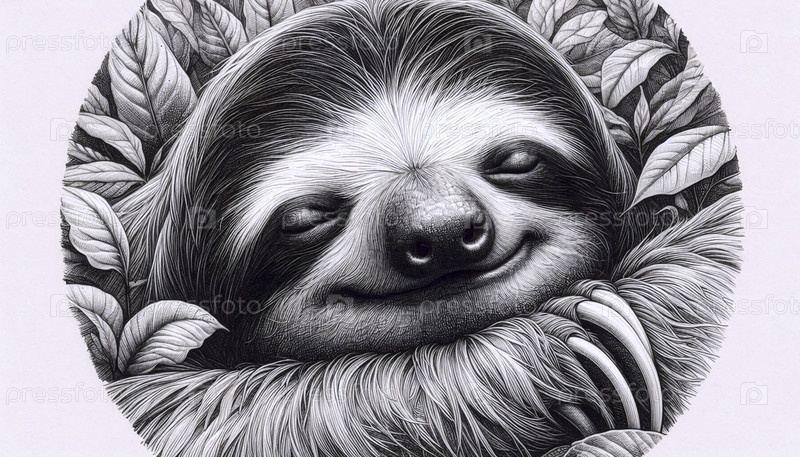 A sleepy sloth ink drawing art print, Ai generated image Спящий ленивец чернила рисует художественный принт, Ай создал изображение