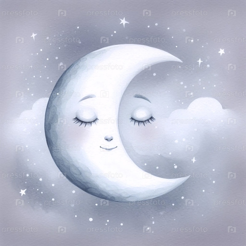 Спящая Луна акварельный арт-принт, Ai generated image A