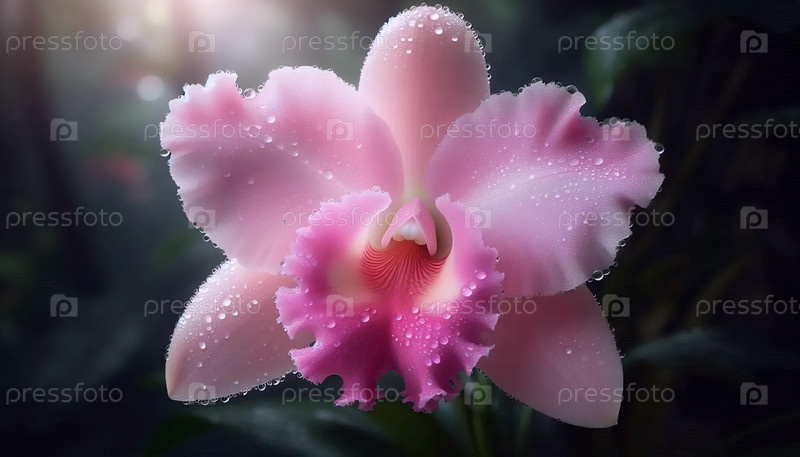 Розовая орхидея с капельками росы, Ai generated image