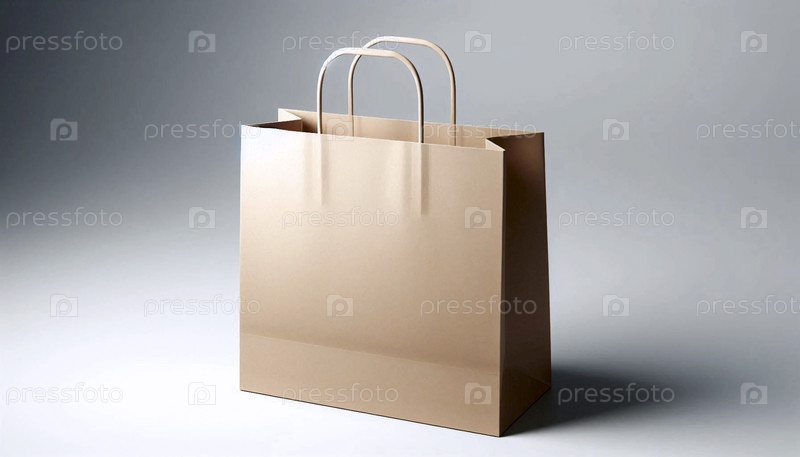 Мокет плоской бумажной торговой сумки с резными ручками, Ai generated image