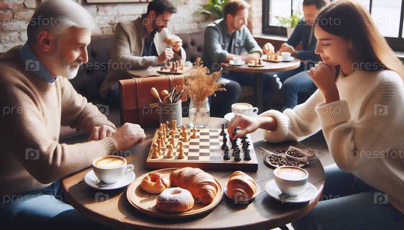 Шахматная игра в кафе, Ai generated image