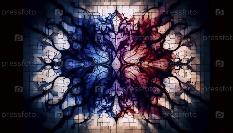Цветная абстрактная крупнометражная фотография объединенных теней окна из стекла, Ai generated image