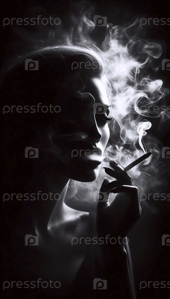 Винтажный фильм-нуар курящий портрет, Ai generated image