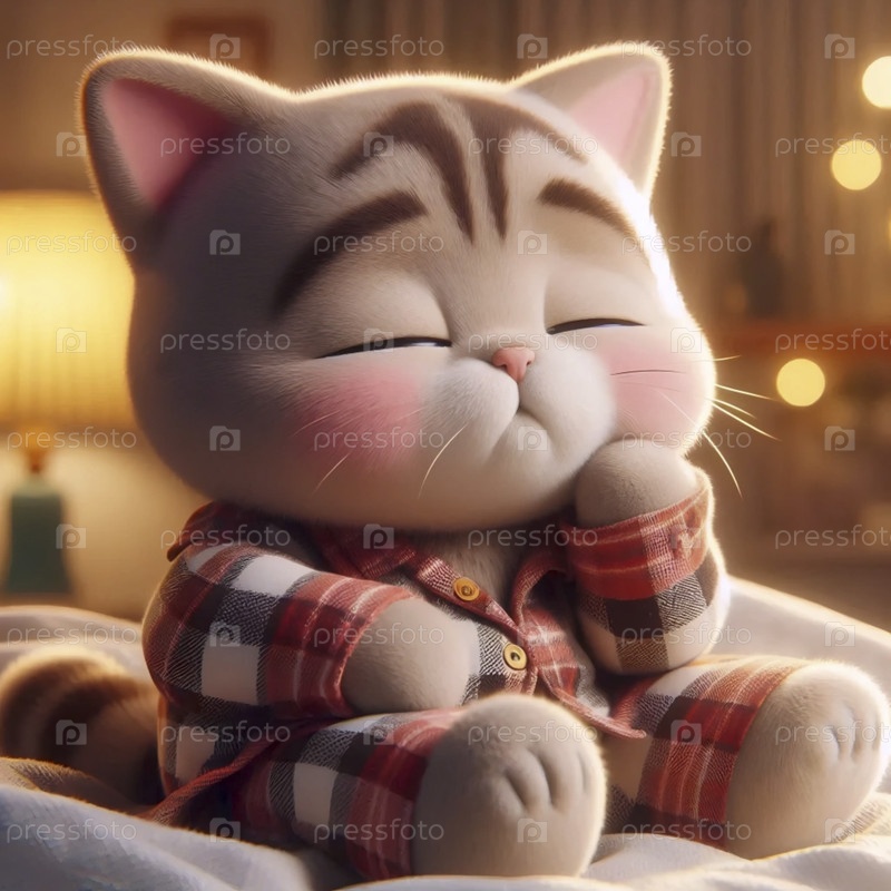 3D плюшевый стиль кошка в пижаме персонаж, Ai A generated image