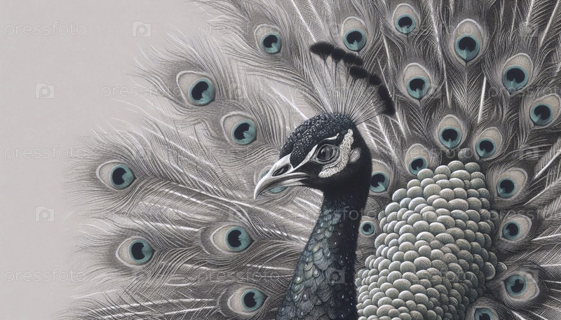 A proud peacock ink drawing art print, Ai generated image (Гордый павлин чернил рисует художественную печать, Ай создал изображение)