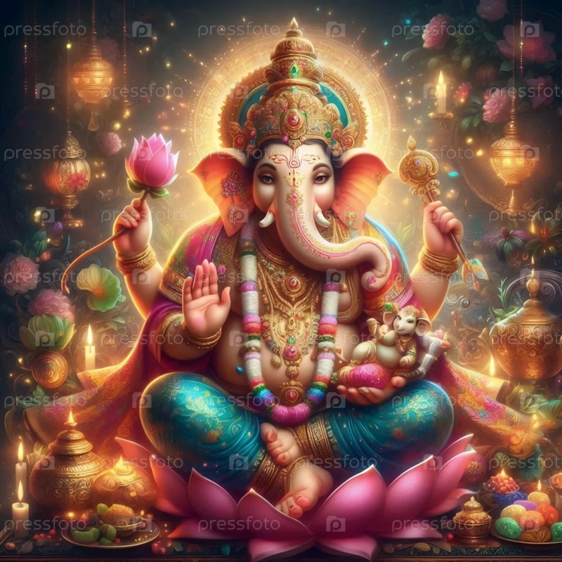 Господь Ганеша с поднятым стволом, Ai generated image