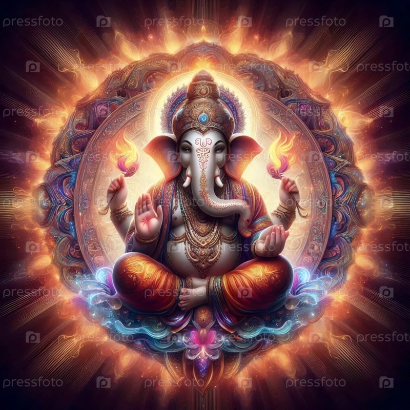 Господь Ганеша внутри огненного круга, Ай создал изображение
