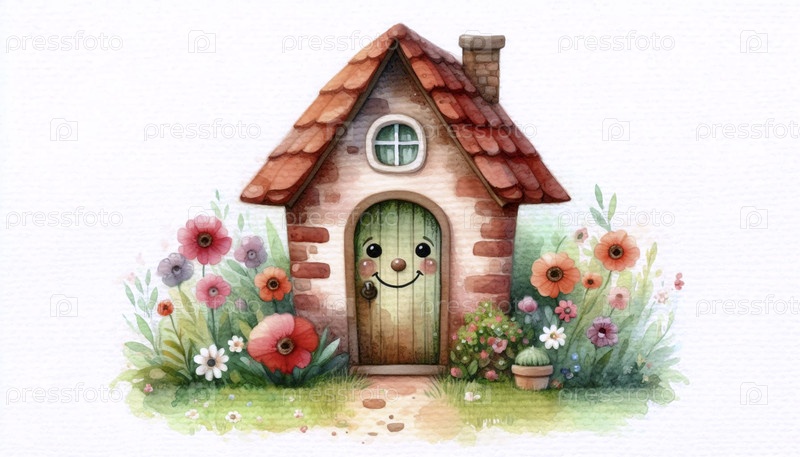 Дружеский дом акварельный арт-принт, Ai generated image A