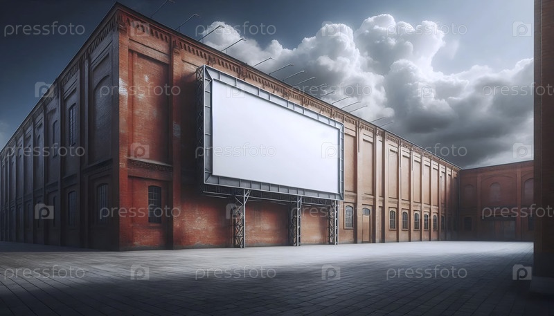 Из пустого макета прямоугольной рекламной доски на кирпичном фасаде промышленного здания Ай создал изображение