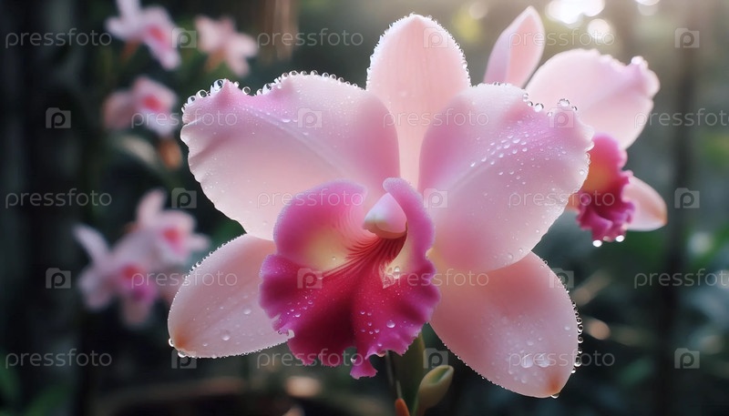 Розовая орхидея с капельками росы, Ai generated image