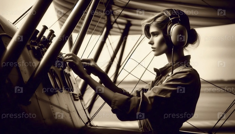 Профильный снимок пилота, проверяющего самолет, Ai создал изображение