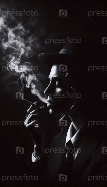 Винтажный фильм-нуар курящий портрет, Ai generated image