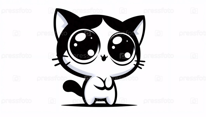 Черно-белая иллюстрация кота кавайи, Ai generated image