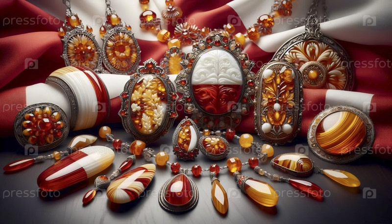 Польский флаг в янтарном ювелирных украшениях ремесло, Ai generated image A