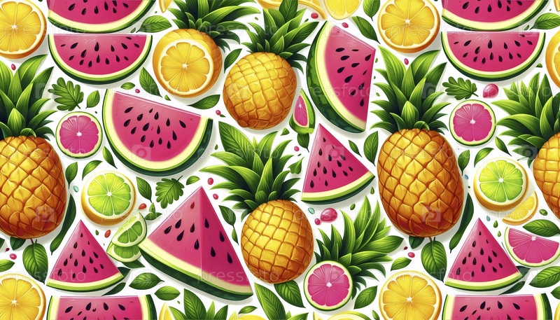 Сочный бесшовный рисунок тропических фруктов, Ai generated image