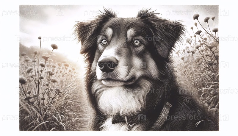 A loyal dog ink drawing art print, Ai generated image Искусственный печатный рисунок с чернилами верной собаки