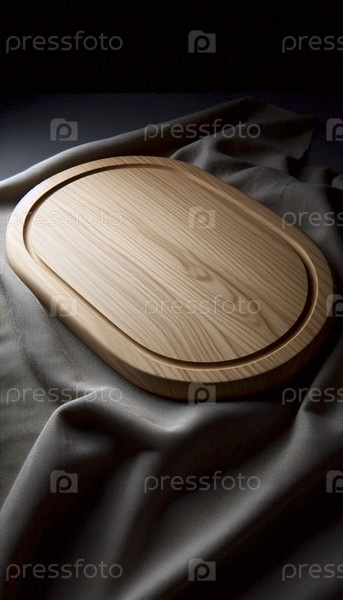 Большой пустой прямоугольный деревянный макет доски для подачи пищи, изолированный на темном льняном салфетке, Ai generated image