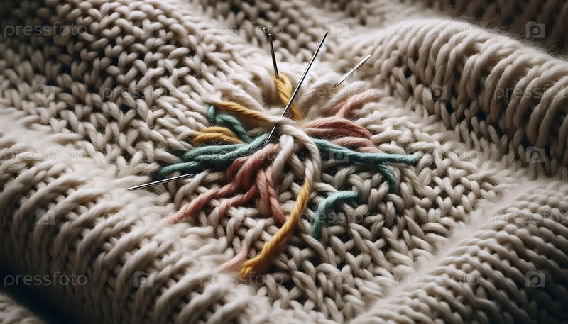 Видимая деталь ремонта на вязанном свитере, Ai generated image