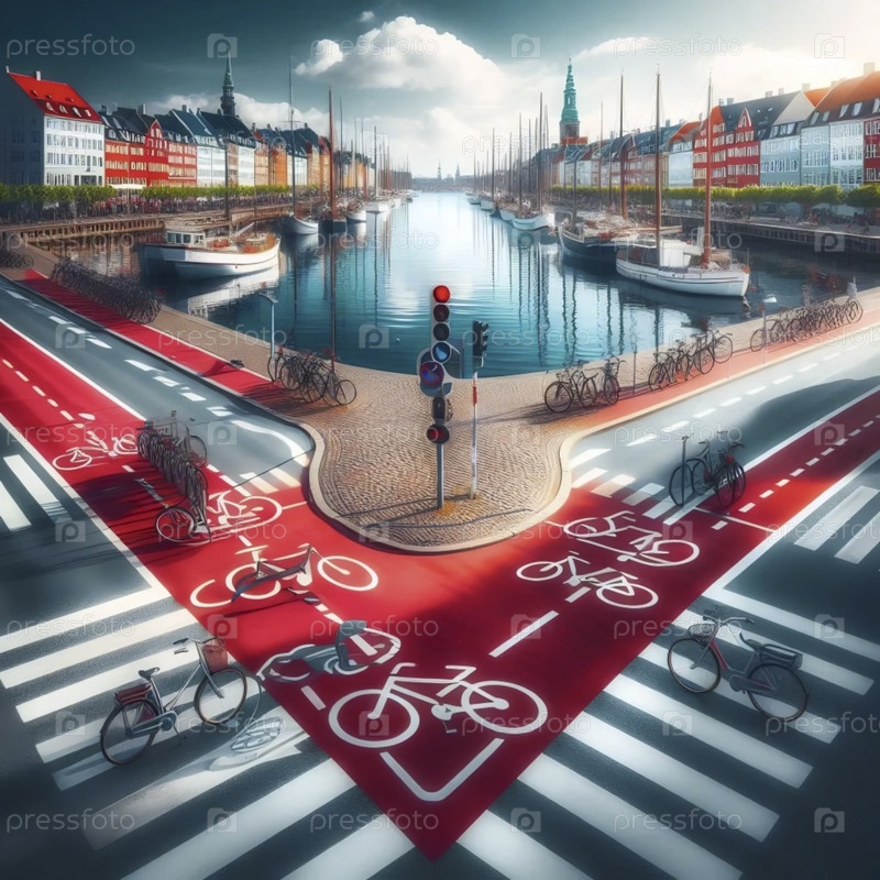 Датский флаг в планировании велосипедного города, Ai generated image A
