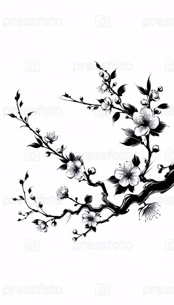 Вишневый цветок ветви линейного искусства, Ai generated image