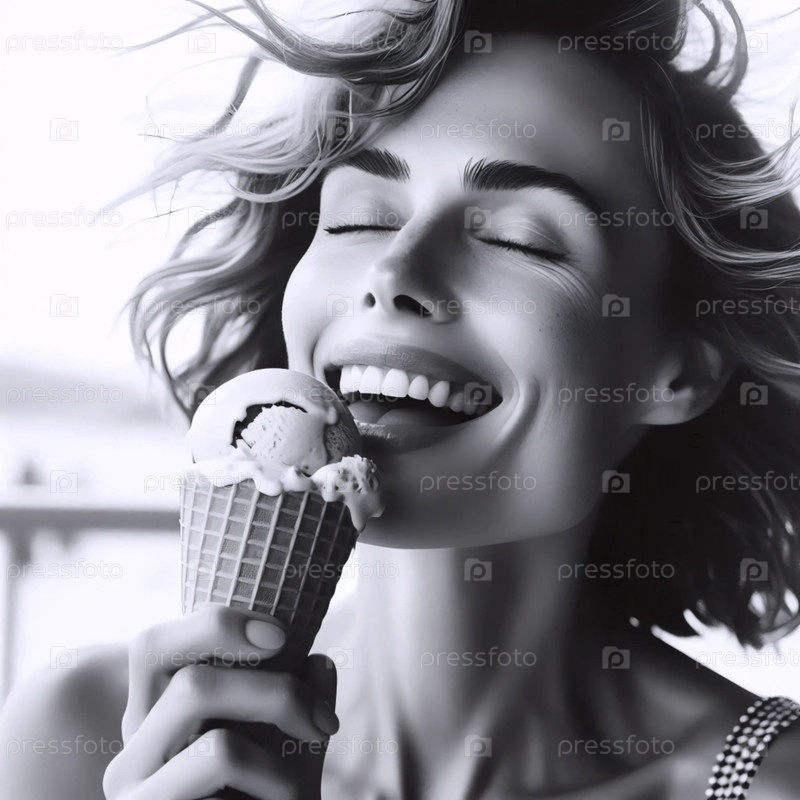 Винтажный портрет наслаждения мороженым, Ai generated image