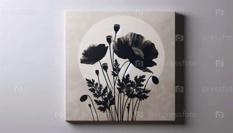 Современный черный цветочный стеновой печат, Ai generated image
