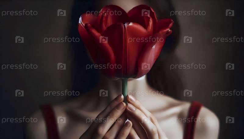 Лицо женщины спрятано за одним тюльпаном, Ai generated image
