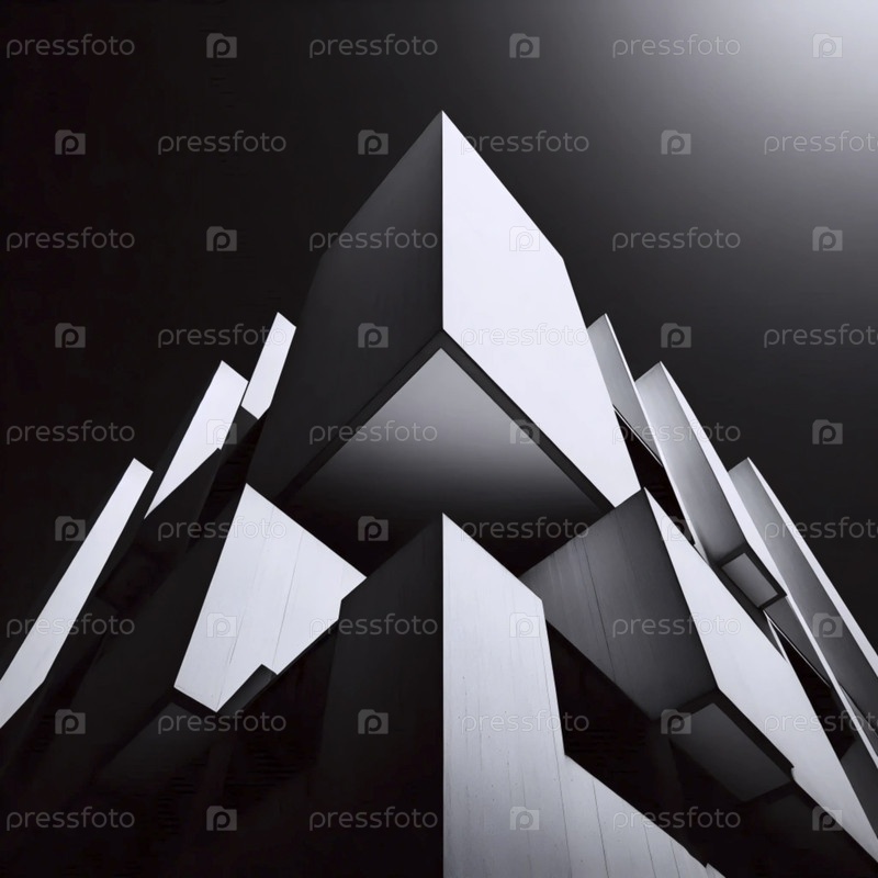 Черно-белый фотографический принт современной архитектуры середины века, Ai generated image