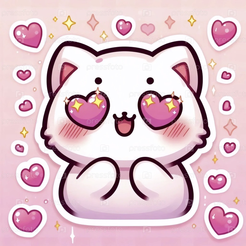 Кошка с глазами сердца влюбленная наклейка, Ai generated image