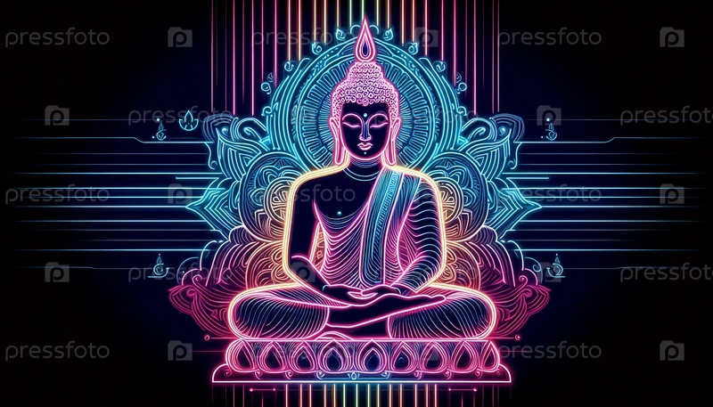 Художественное произведение неонового Будды, Ai generated image
