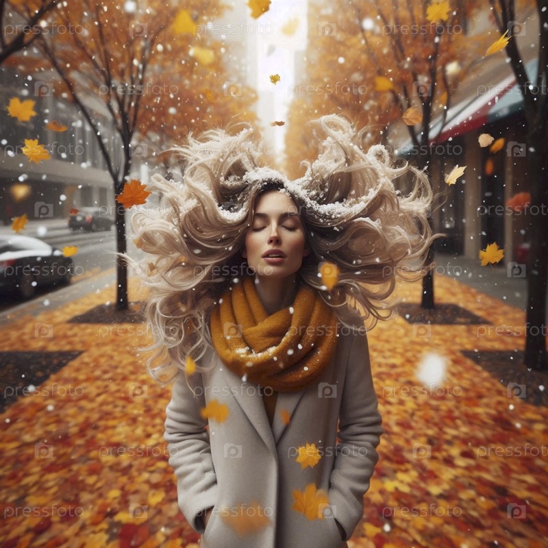 Женщина, попавшая в личный снегопад, Ai generated image