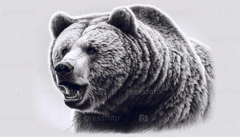 A mighty bear ink drawing art print, Ai generated image Веселый медведь чернила рисование художественная печать, Ай создал изображение