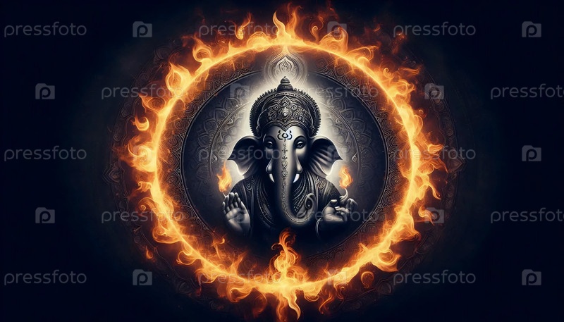 Господь Ганеша внутри огненного круга, Ай создал изображение